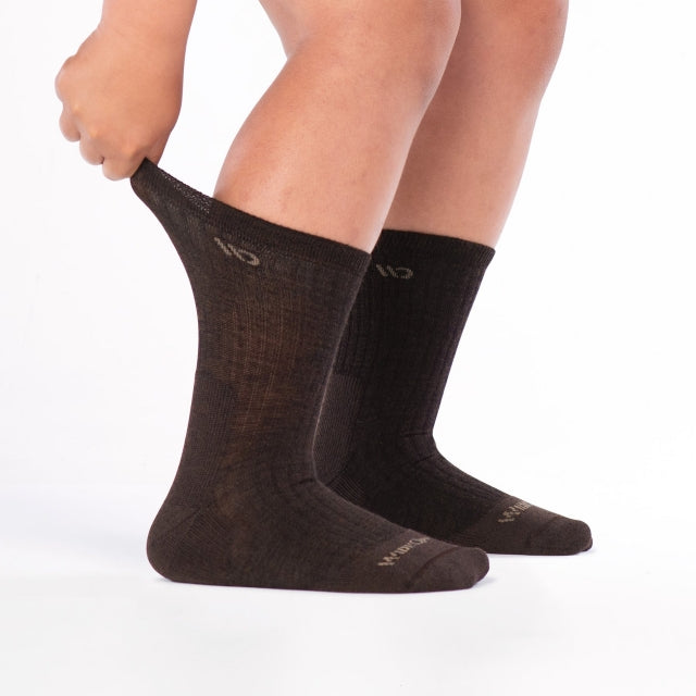 A solid, "every occasion" sock. Made of a midweight, terry loop Merino Wool for multi - season activity (and lounging), the Men's Solid Cushioned Micro Crews are the perfect height, designed to reach just over to top of a boot or high top - no adjusting throughout the day required.